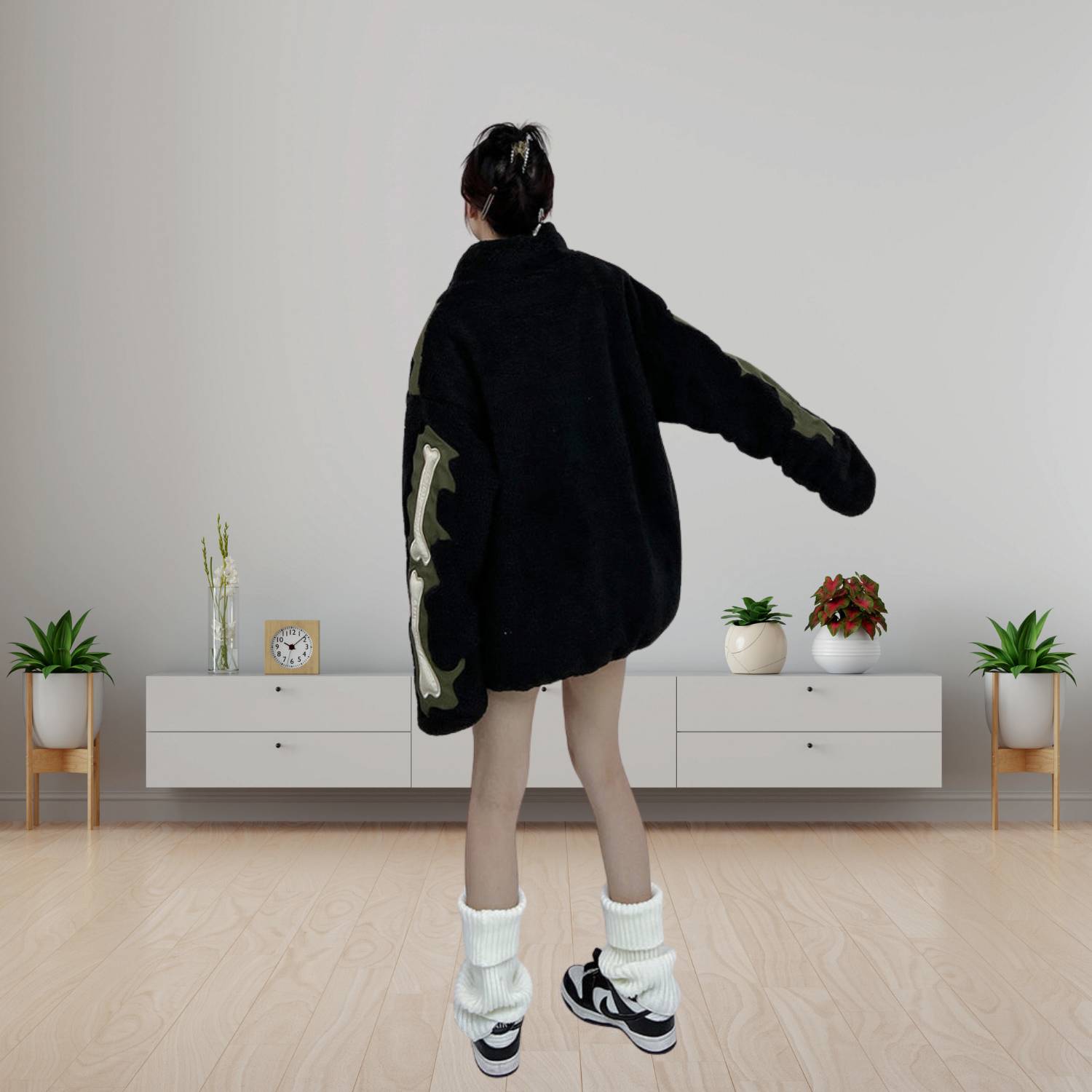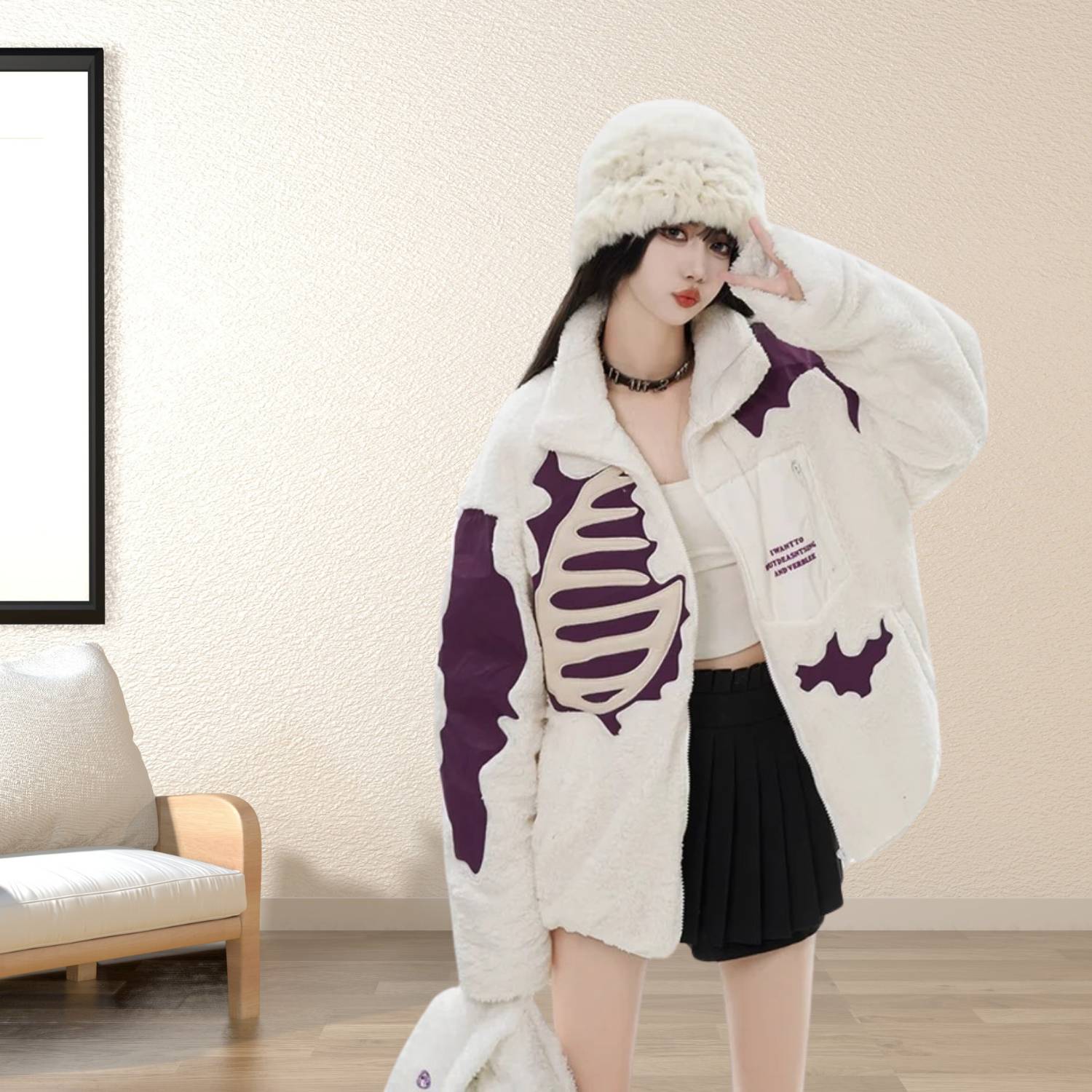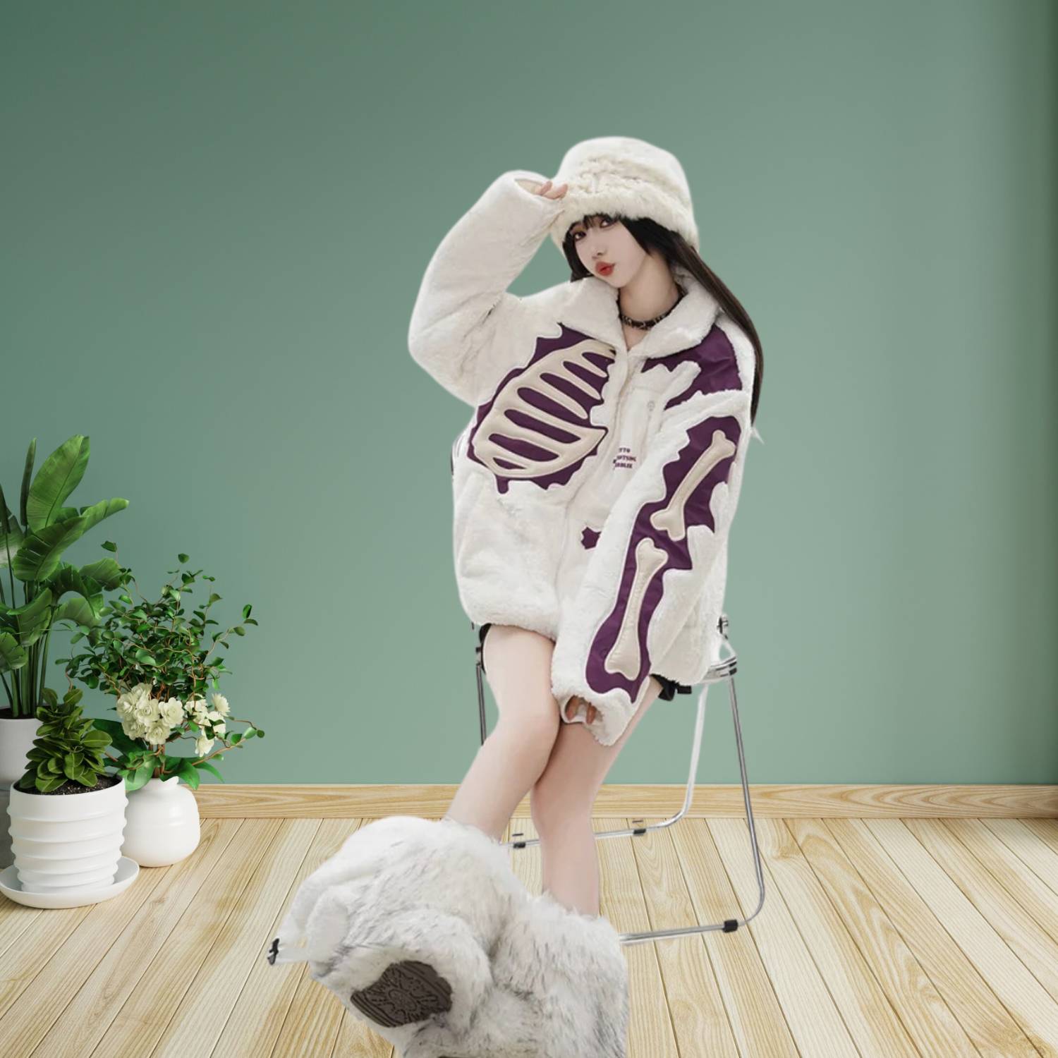 A standout fleece jacket featuring a striking skeleton design for a modern street-style edge.